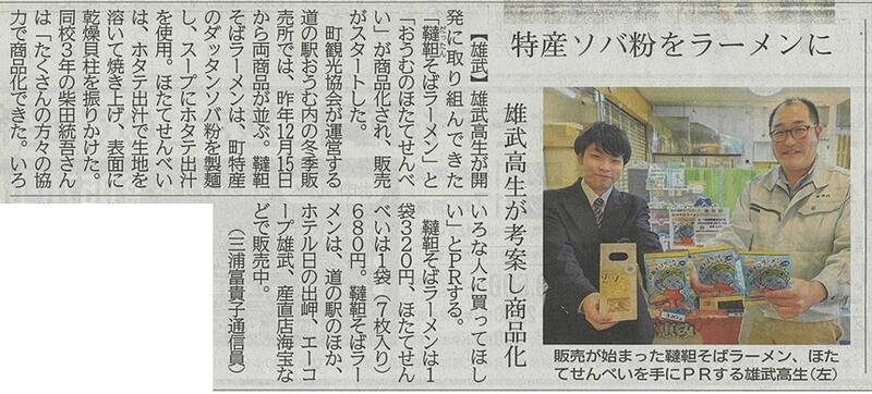 | 『特産そば粉をラーメンに』 1月8日掲載 |