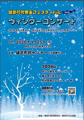 雄武町内の中学生・高校生、地域の大人吹奏楽バンドが出演する「雄武町吹奏楽フェスティバル Vol.6 ウィンターコンサート」が開催されます。