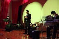 午後からは、恒例となっている3年生音楽Ⅲの卒業コンサートが行われました。3年間の音楽の授業の集大成として、8グループが9曲を演奏しました。この日に向けて、生徒1人1人が挑戦したい楽器を選び、練習を重ねてきました。ギターやベース、ドラムといったバンド楽器のほか、ピアノやグロッケンなど、さまざまな楽器を用いた演奏が披露されました。最後はバンドによるライブで、会場は大いに盛り上がりました。