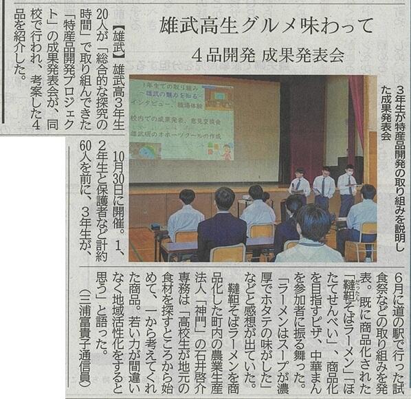 | 『雄武高生グルメ味わって 4品開発成果発表会』 11月6日掲載 |