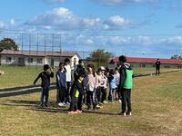 10/11(土)、町教育委員会からの委託を受けて、2回目の「かけっこ教室」を開催しました。陸上競技部員と本校に教育実習できていた陸上競技部のOBがコーチとなって、近隣の小学生17名に身体の動かし方や短距離走、投てきの指導を行いました。当日は肌寒かったのですが、天候に恵まれ本校のグラウンドで実施することができ、前半はグラウンドで、短距離走の練習をし、速く走るための姿勢についてレクチャーしました。後半は体育館に移動し、ドッヂボールで体を動かし、ジャベリックボールの投げ方などを丁寧に教えました。将来、雄武高校に入学して、陸上競技部で活躍してくれることを期待していますよ~!