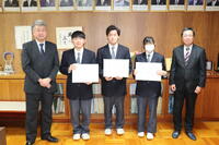 表彰式では、豊田教育長より賞状と副賞の図書カードを受け取りました。