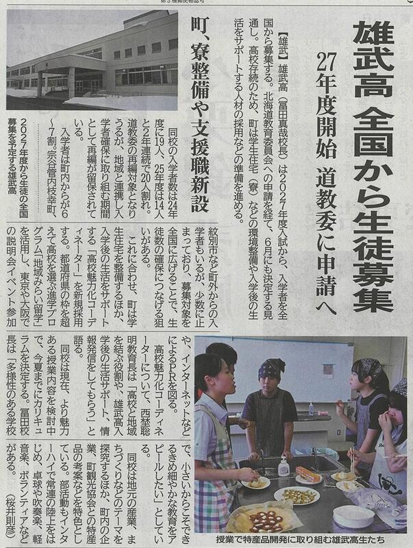 | 『雄武高 全国から生徒募集』 3月14日掲載 |