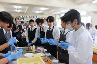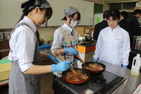 美幌高校の地域加工食品班7名の生徒さんから、校内施設の案内のあと、共同で食品開発されたメニューの作製、最後にお互いの商品開発の活動成果発表を行いました。
